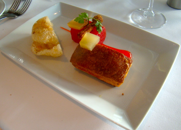 I have to say this dish was my favourite part of the whole evening. I know you're thinking it's just a pork chop and coleslaw but with each bite of the deliciously cooked fatty pork chop I craved that fresh slaw with apple. The dressing was creamy but still fresh enough for the pork, I would love the recipe. And the highlight was that small piece of crispy crackling, a salty, crunchy, melt in your mouth kind of goodness in one chip.